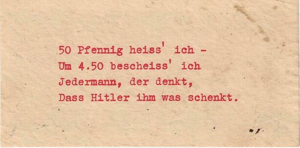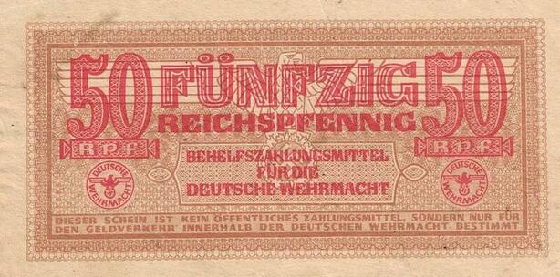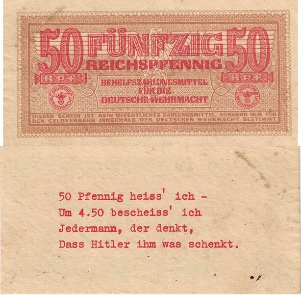 Q4927 Rare Banknote Germany Wehrmacht 50 Reichspfennig Propaganda Message