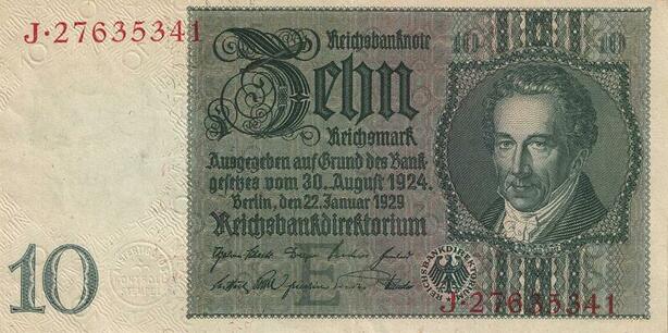 Q4948 Banknote Germany Berlin 10 Reichsmark Albrecht Daniel Thaer 1929 AU