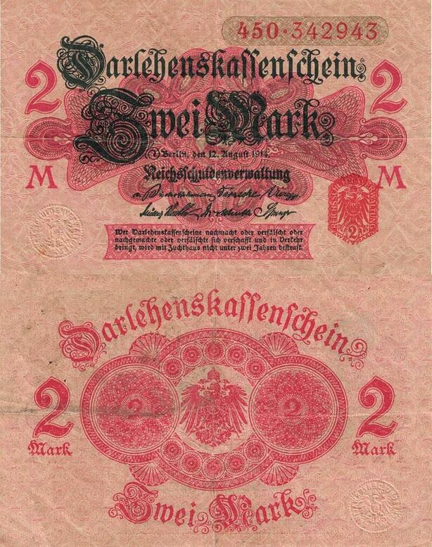 Q4949 Banknote Germany Berlin 2 Mark Darlehenskassenschein 1914 - Make Offer
