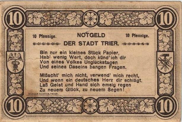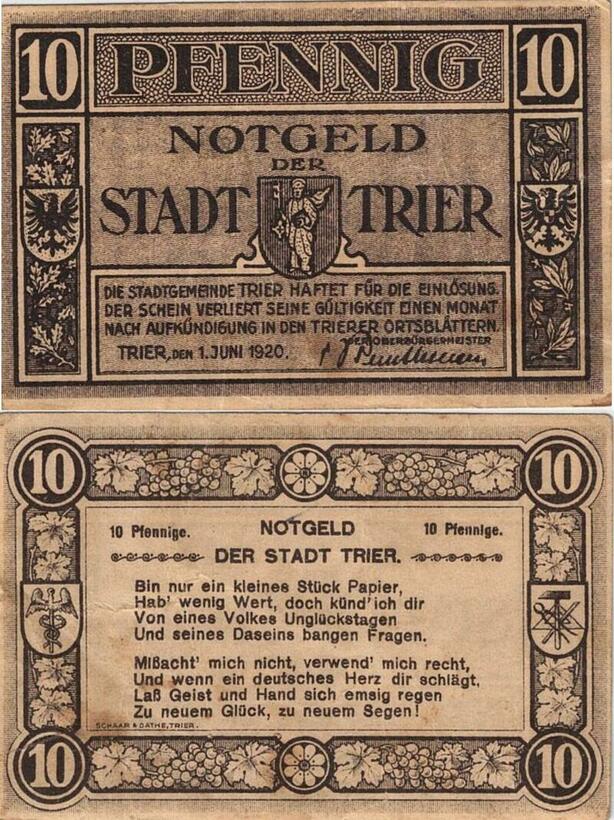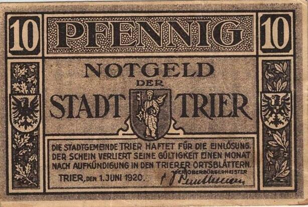 Q4953 Banknote Germany Trier 10 Pfennig 1920 Notgeld - Make Offer