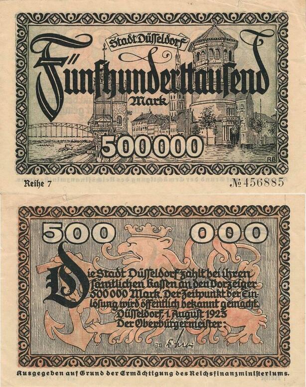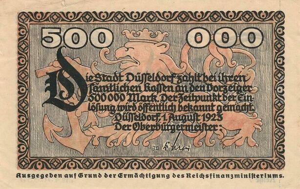Q4954 Banknote Germany Dusseldorf 500 000 Mark 1923 - Make Offer