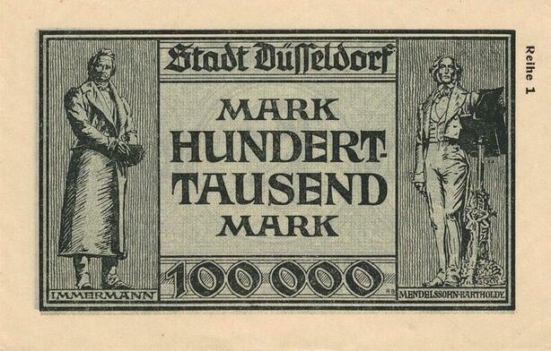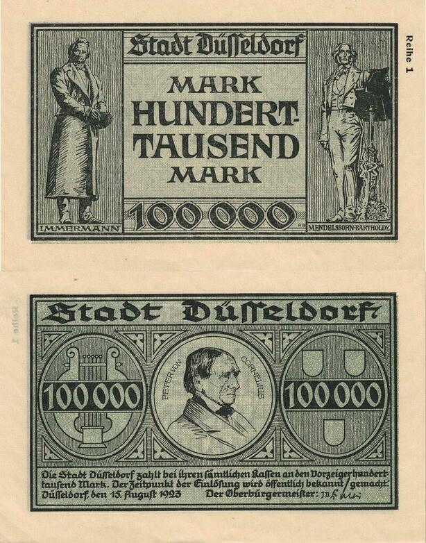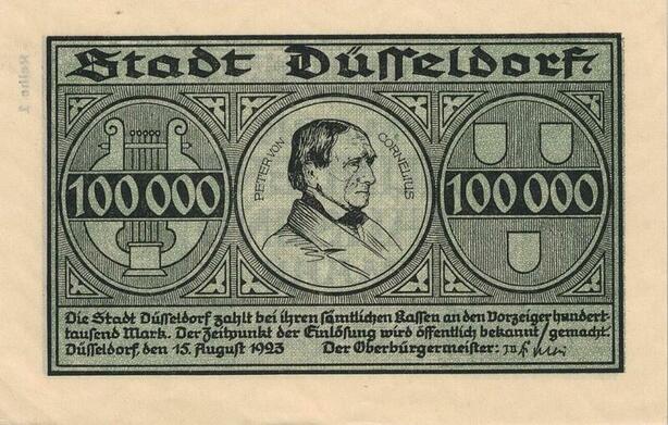 Q4956 Banknote Germany Dusseldorf 100 000 Mark Cornelius 1923 AU