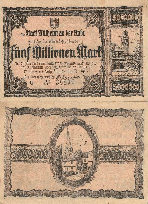 Q4957 Banknote Germany Mülheim 5 Millionen Mark 1923 - Make Offer