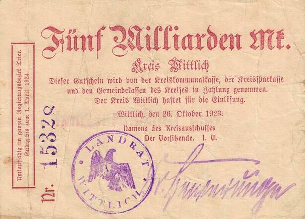 Q4961 Banknote Germany Wittlich Namens 5 Milliarden Mark 1923 - Make Offer