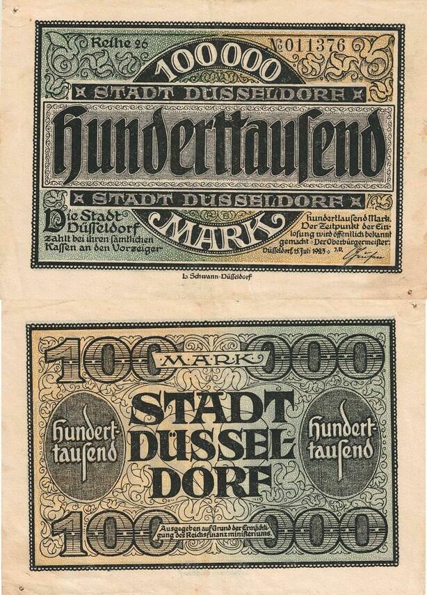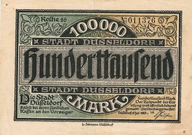 Q4962 Banknote Germany Dusseldorf 100000 Mark 1923 - Make Offer
