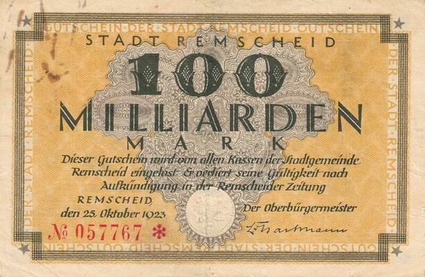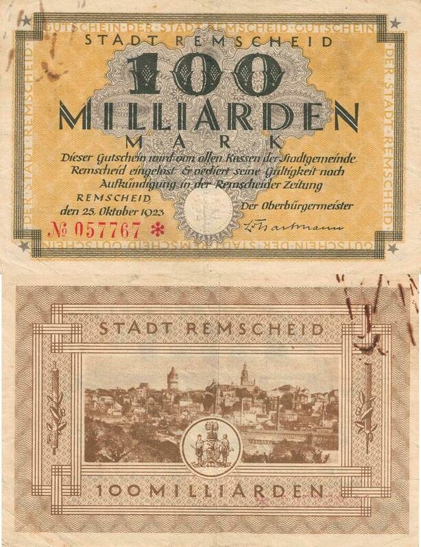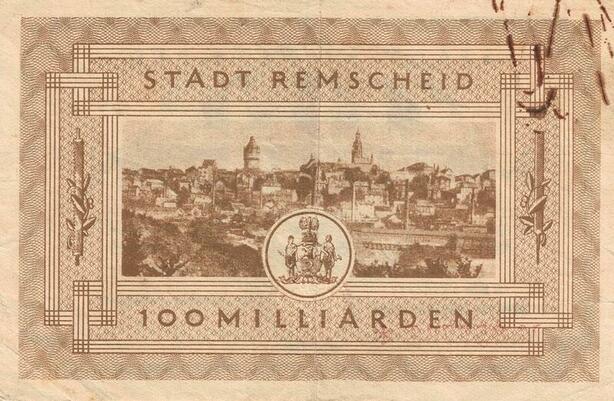 Q4966 Rare Banknote Germany Remscheid 100 Milliarden Mark 1923 Notgeld - M Offer