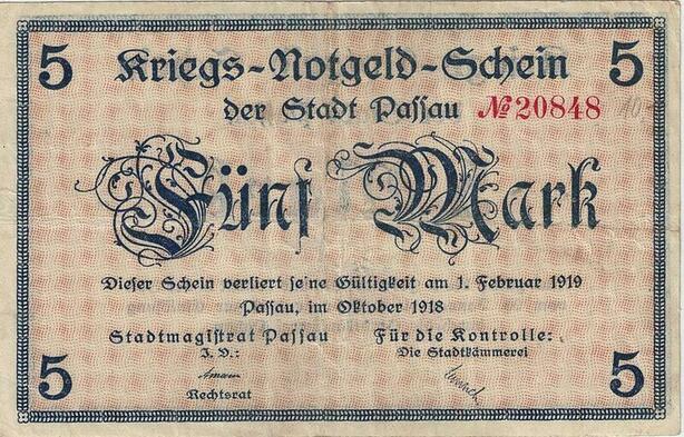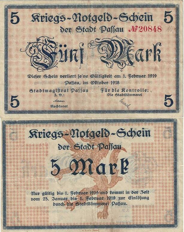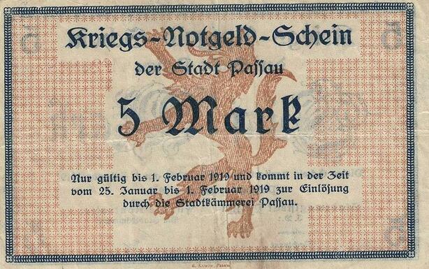 Q4967 Banknote Germany Paffau 5 Mark Lion 1918 Notgeld - Make Offer