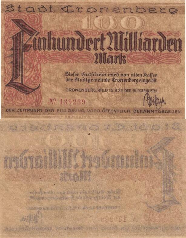 Q4971 Banknote Germany Cronenberg 1 Milliarden Marks Onesided 1923
