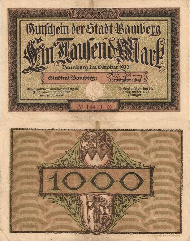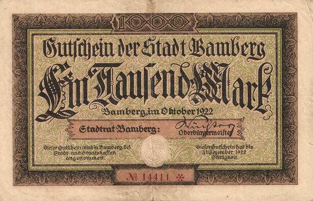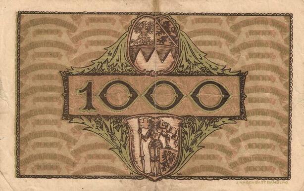 Q4974 Banknote Germany Bamberg 1000 Mark Coat of Arms 1922 - Make Offer