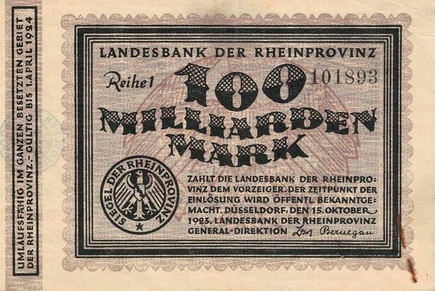 Q4978 Banknote Germany Rheinprovinz 100 Milliarden Mark 1924 - Make Offer