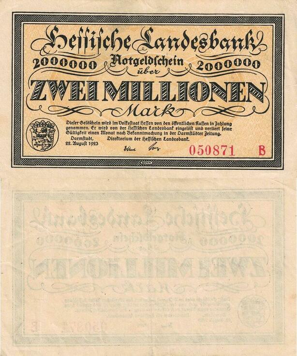 Q4989 Banknote Germany 2 Millionen Mark Onesided 1923 Notgeld - Make Offer