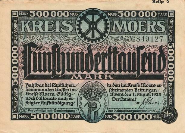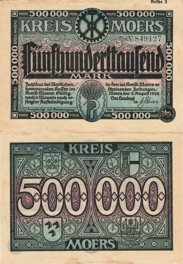 Q4990 Banknote Germany 500000 Mark Coat of Arms Moers 1923 - Make Offer