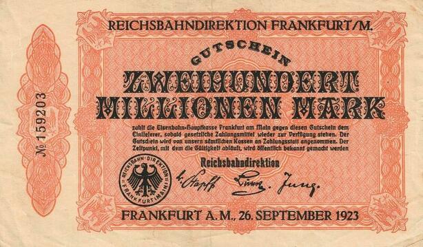 Q4992 Banknote Germany Frankfurt 200 Millionen Mark Onsided 1923 - M Offer