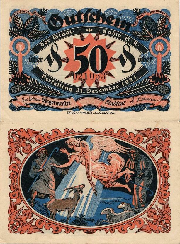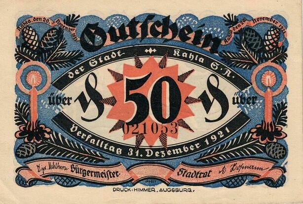 Q4994 Banknote Germany Kahla 50 Pfennig Angel 1921 - Make Offer