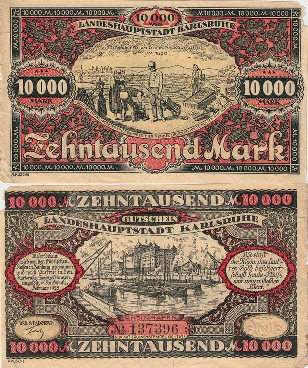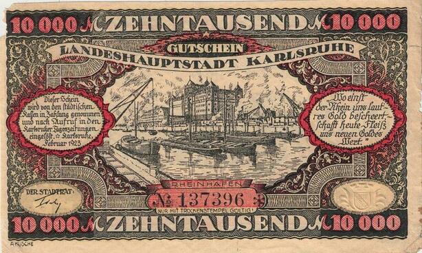 Q4996 Banknote Germany Port Karlsruhe 10 000 Mark 1923 - Make Offer