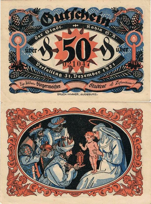 Q5000 Banknote Germany 50 Pfennig Virgin Mary Jesus Presents Kahla 1921 -Make Offer