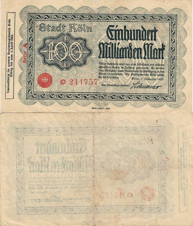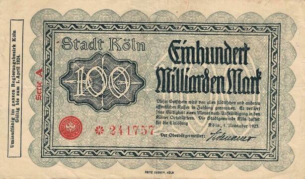 Q5001 Banknote Germany Köln 100 Milliarden Mark Onesided 1923 Notgeld - Offer