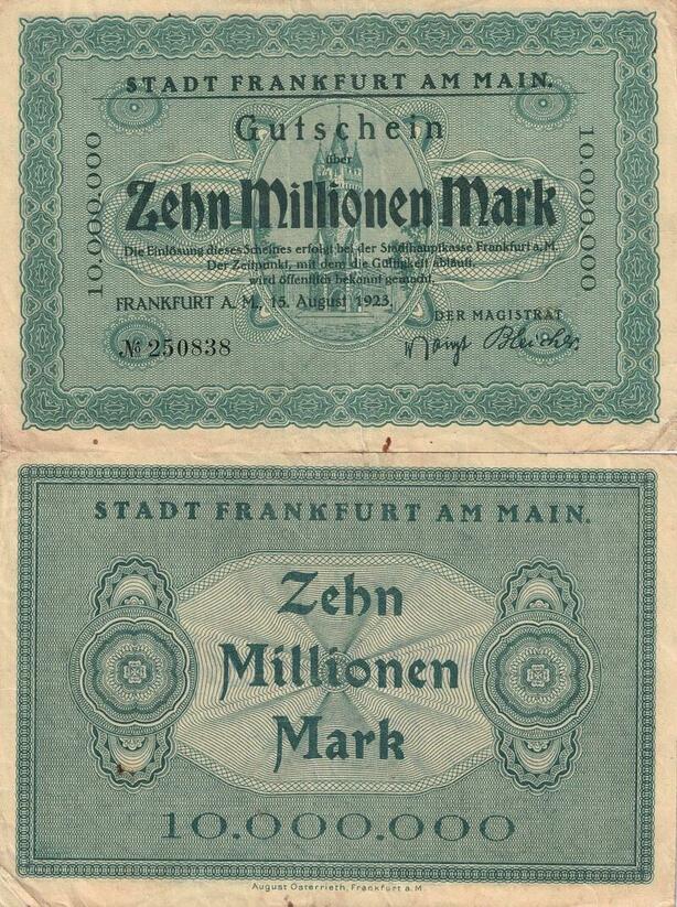 Q5002 Banknote Germany Frankfurt 10 Millionen Mark Tower 1923 - Make Offer