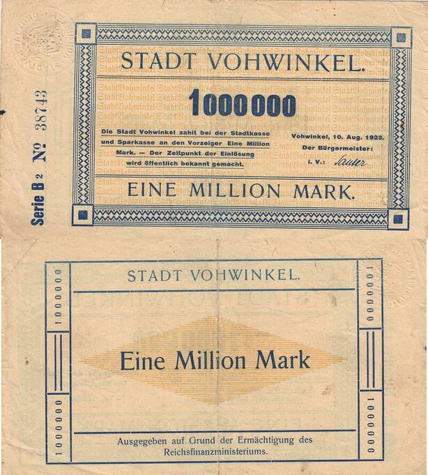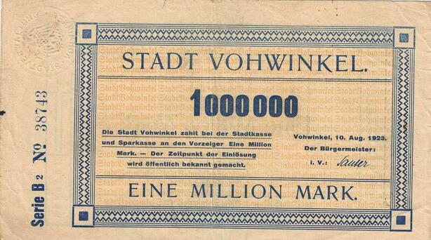 Q5005 Banknote Germany Vohwinkel 10 Millionen Mark Watermark 1923 - Make Offer