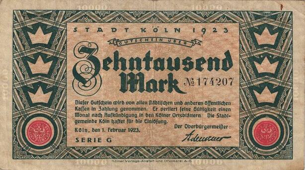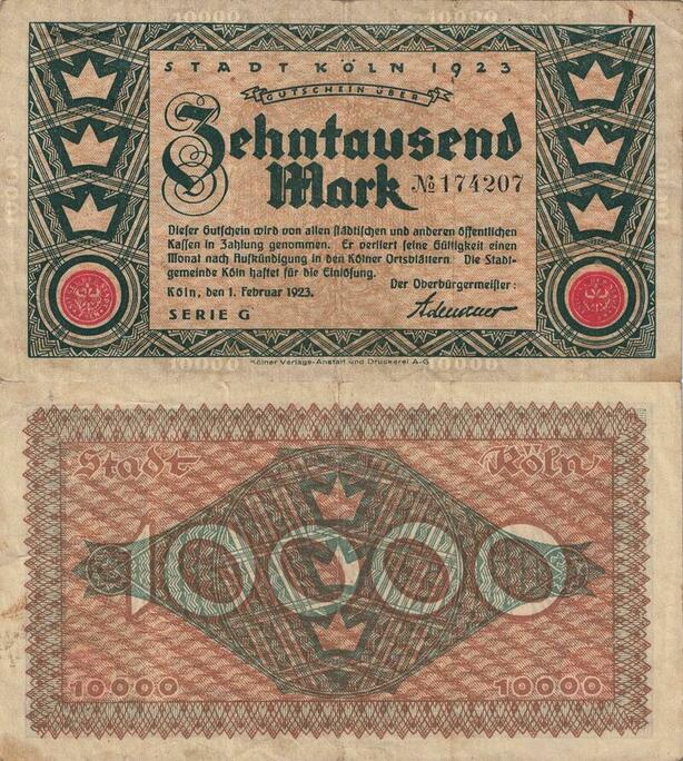 Q5008 Banknote Germany Köln 10000 Marks Ornament 1923 - Make Offer