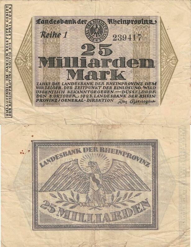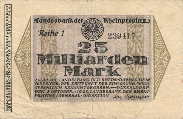 Q5011 Banknote Germany Düsseldorf 25 Milliarden Mark Rheinprovinz 1923