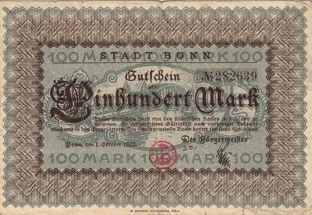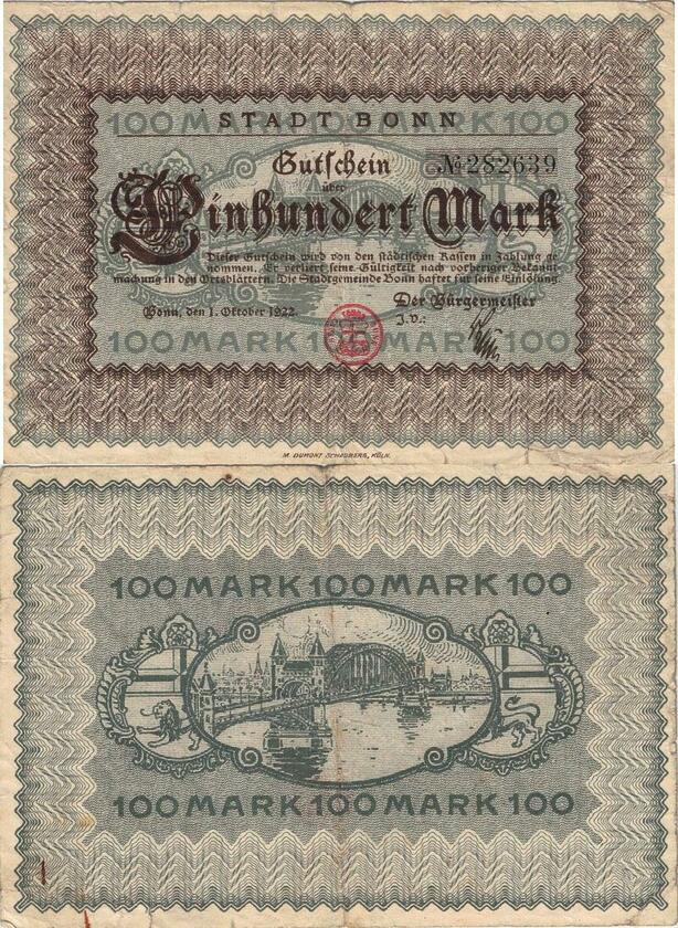 Q5012 Banknote Germany Bonn 100 Mark Bridge 1922 - Make Offer