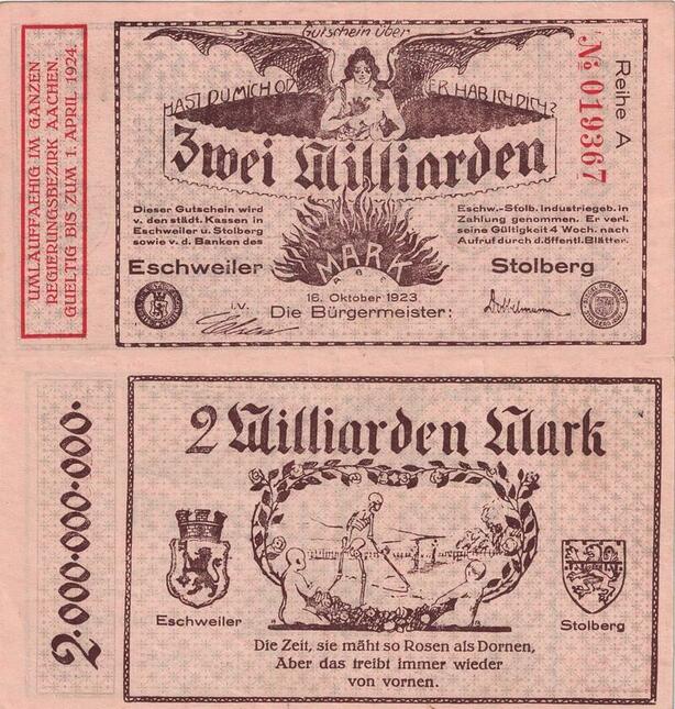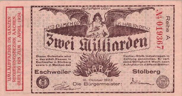 Q5018 Banknote Germany Eschweiler Stolberg 2 Milliarden Mark Devil 1923 - Make Offer