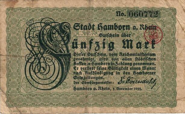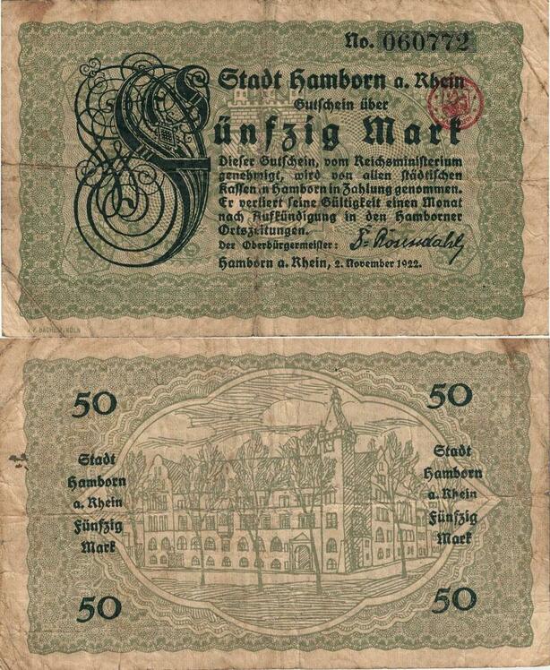 Q5019 Banknote Germany Hamborn 50 Mark Stylised S 1922 - Make Offer