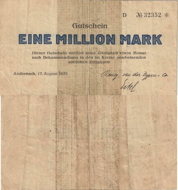 Q5021 Banknote Germany Andernach 100000 Mark Onesided 1923 - Make Offer