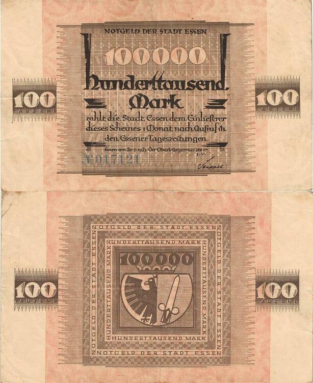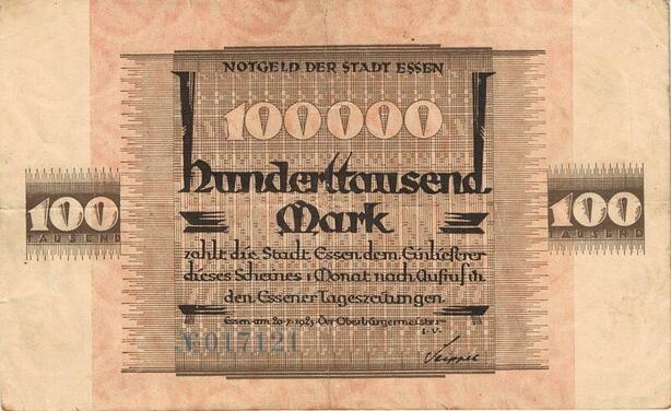 Q5029 Banknote Germany Essen 100000 Mark Eagle and sword 1923 - Make Offer