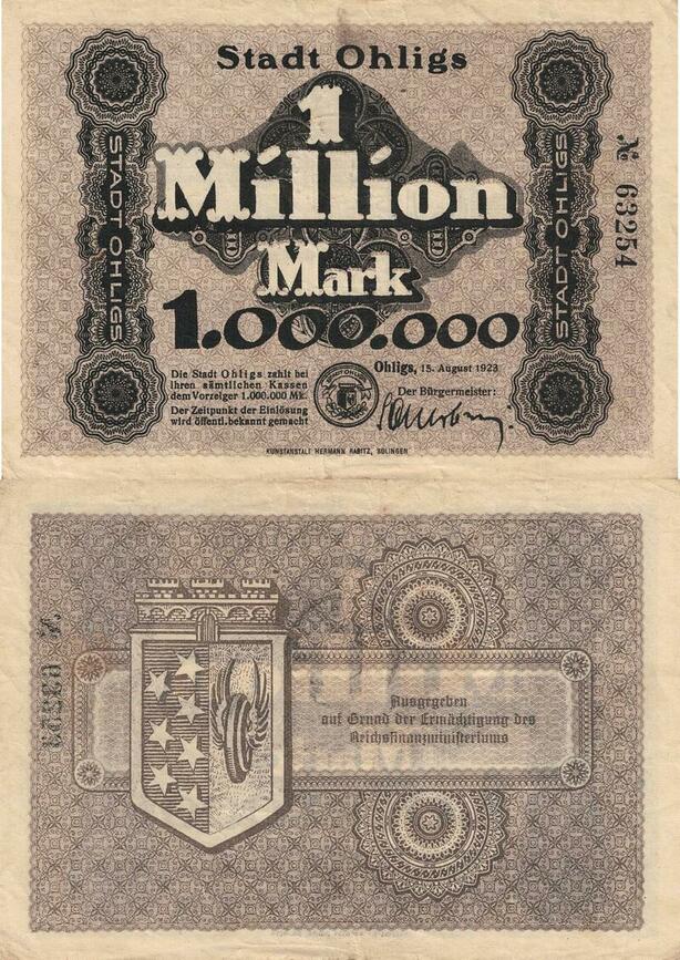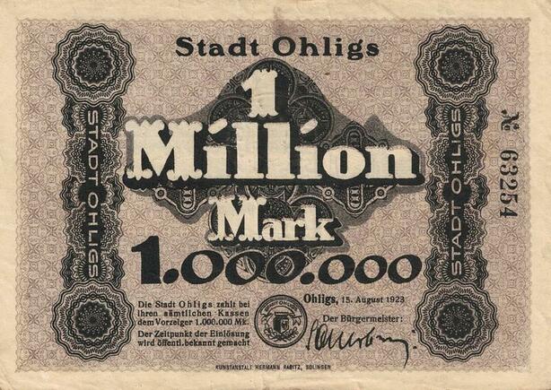 Q5037 Banknote Germany Ohligs 1 Million Mark 1923 - Make Offer