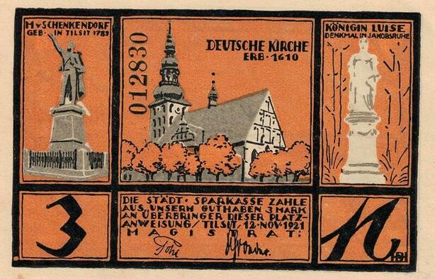Q5042 Banknote Germany Tilsit 3 Mark View Dammstrasse 1921 - M Offer