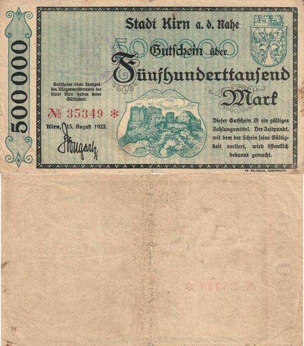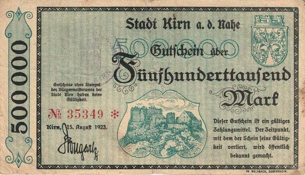 Q5044 Banknote Germany 500000 Mark Castle Kirn 1923 - Make Offer