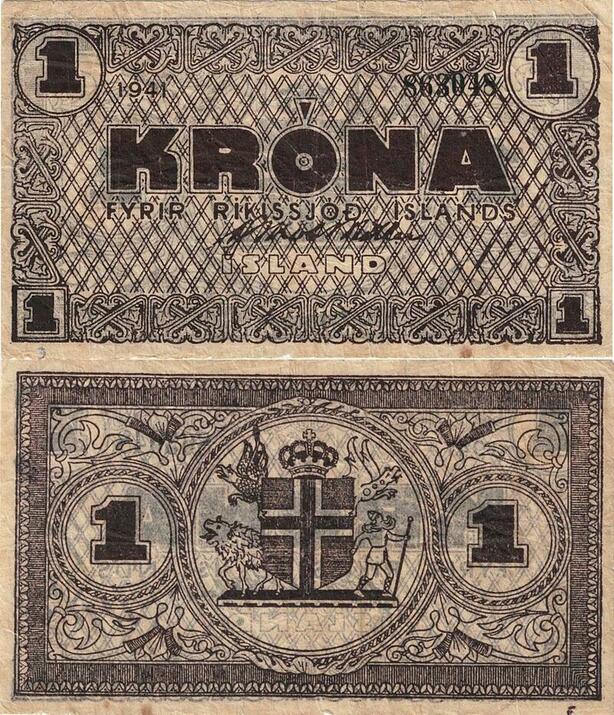 Q5061 Banknote Fyrir Rikissjod Island 1 Krona 1941 - Make Offer