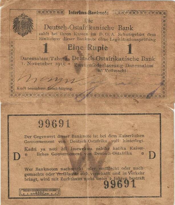 Q5067 Banknote German East Africa Deutsch-Ostafrikanische 1 Rupie 1915 - Make Offer