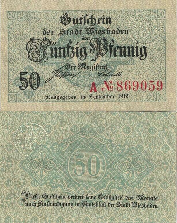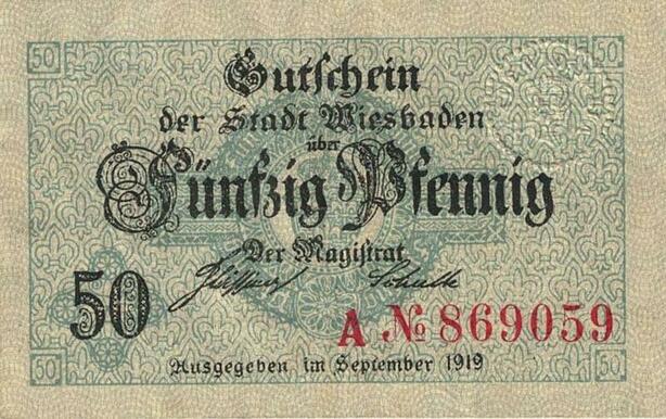 Q5071 Banknote Germany Wiesbaden 50 Pfennig Antique Buchstabe Notgeld 1919 - Make Offer
