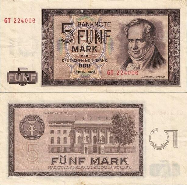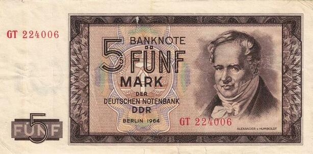 Q5074 Banknote Germany Staatsbank Der DDR 5 Mark Alexander Humboldt 1964 - Make Offer