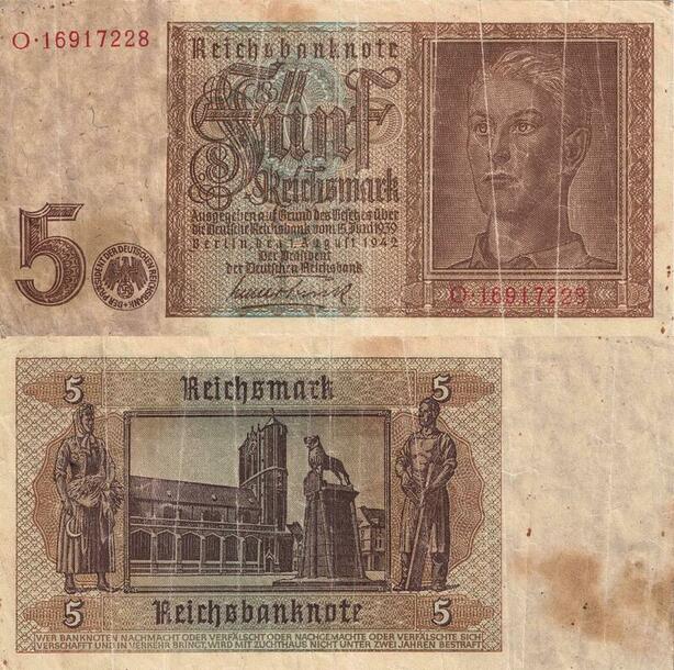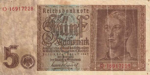 Q5092 Banknote Germany Berlin 5 Reischsmark Hitlerjunge 1942 - Make Offer