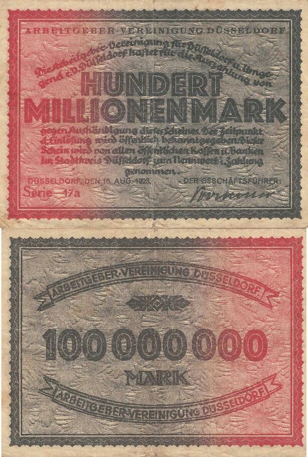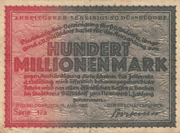 Q5107 Banknote Germany 100 Millionen Mark Arbeitgeber Verenigung 1923 - M Offer