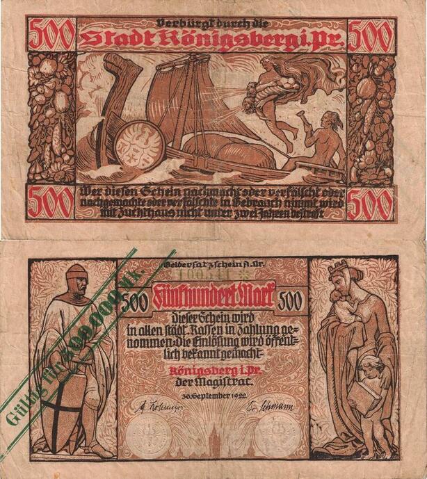 Q5108 Banknote Germany 500 Mark/ 500000 Mark Stadt Ronigsberg 1922 - Offer