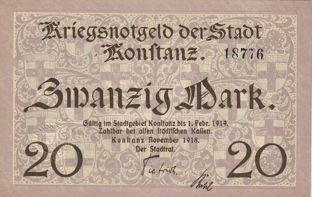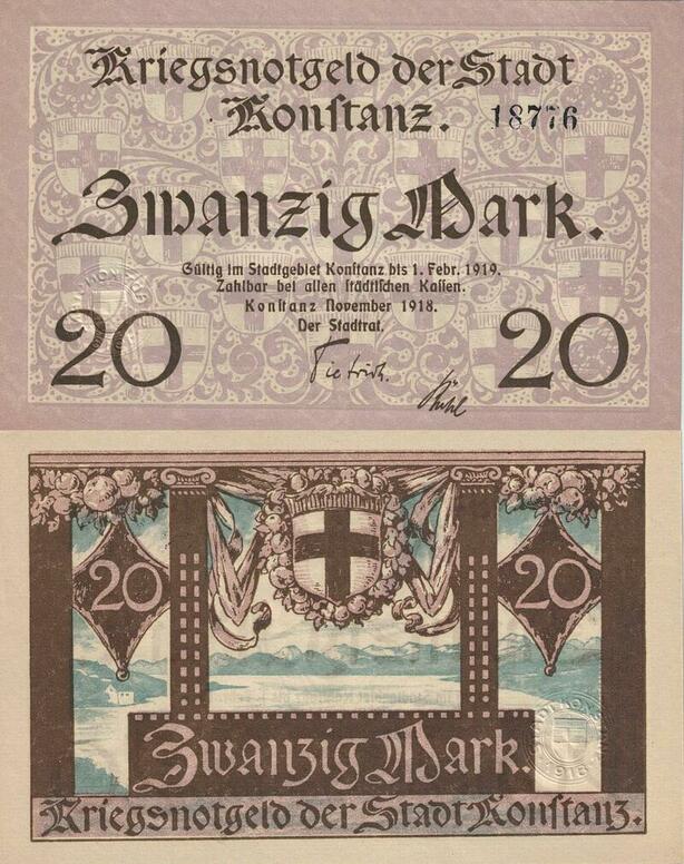 Q5110 Banknote Germany Konstanz 20 Mark Kriegsnotgeld 1918 - M Offer