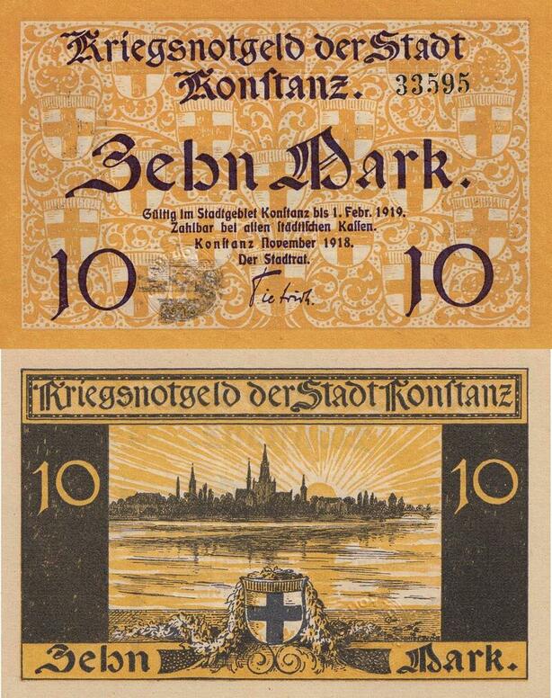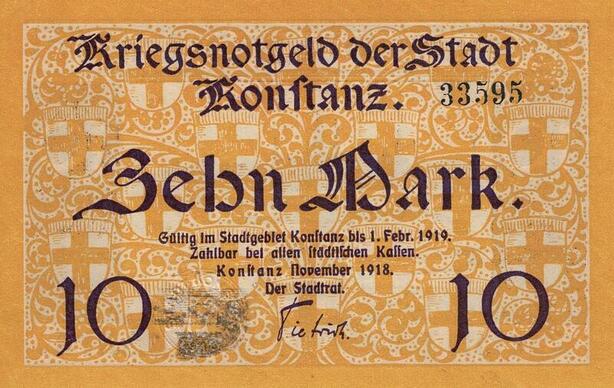 Q5114 Banknote Germany Konftanz 10 Mark Kriegsnotgeld 1919 - Make Offer