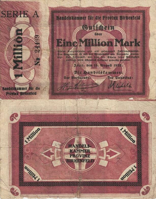 Q5118 Banknote Germany Birkenfeld 1 Million Mark 1923 - Make Offer