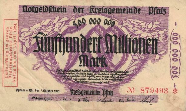 Q5123 Banknote Germany 500 Millionen Mark Notgeldschein 1923 - Make Offer