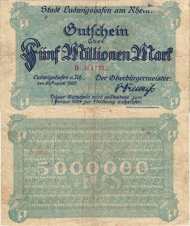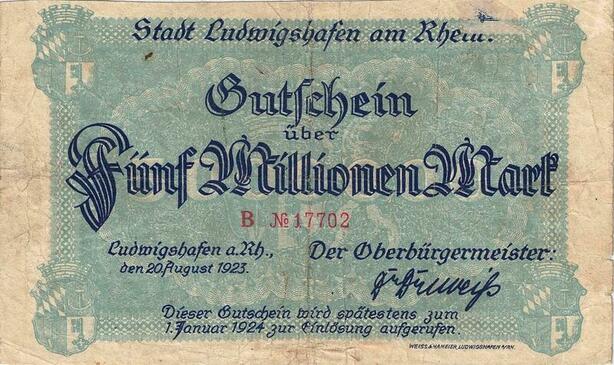 Q5129 Banknote Germany Ludwigshafen am Rhein 5 Millionen Mark 1923 - Make Offer
