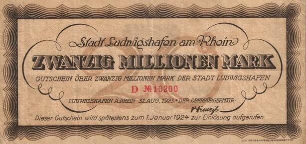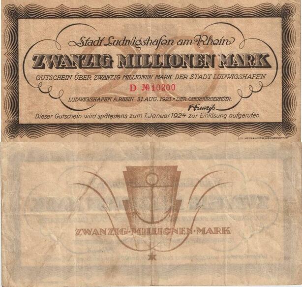 Q5130 Banknote Germany Ludwigshafen am Rhein 20 Millionen Mark 1923 - Make Offer