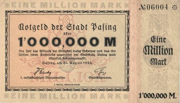 Q5135 Banknote Germany 1 Million Mark Notgeld Pasing 1923 - Make Offer