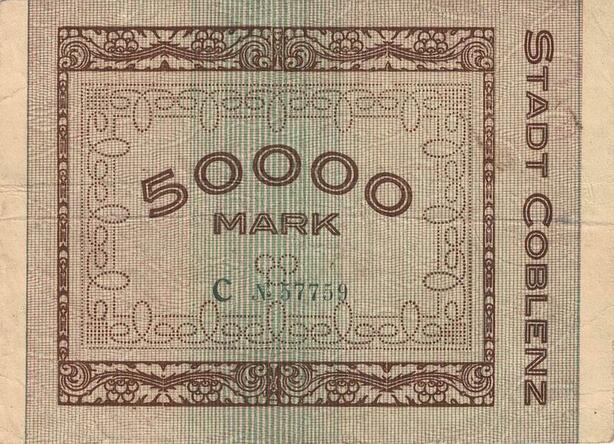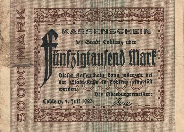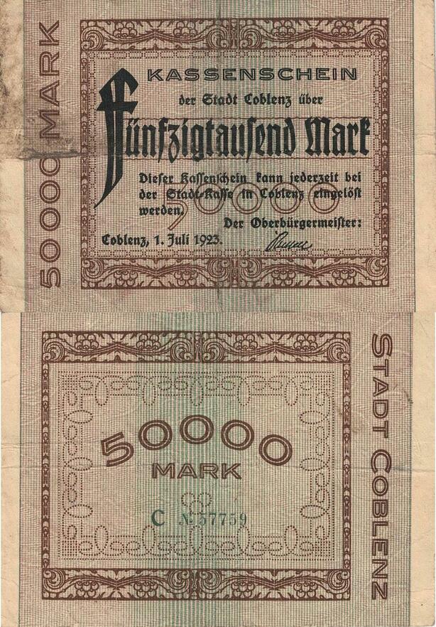 Q5143 Banknote Germany 50000 Mark Kaffenschein Coblenz 1923 - M Offer