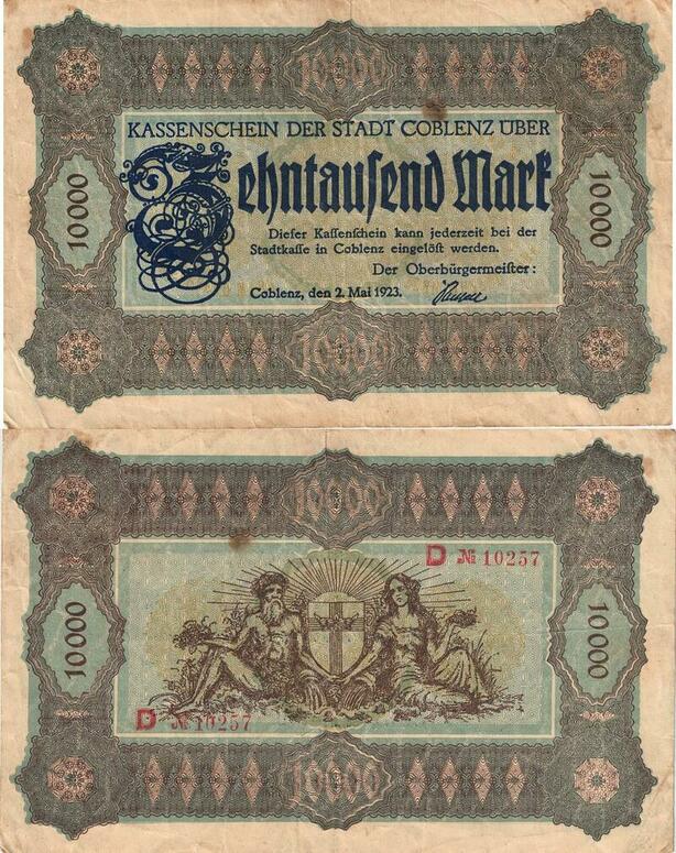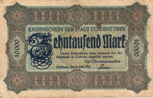Q5144 Banknote Germany 10000 Mark Kaffenschein Coblenz 1923 - Make Offer