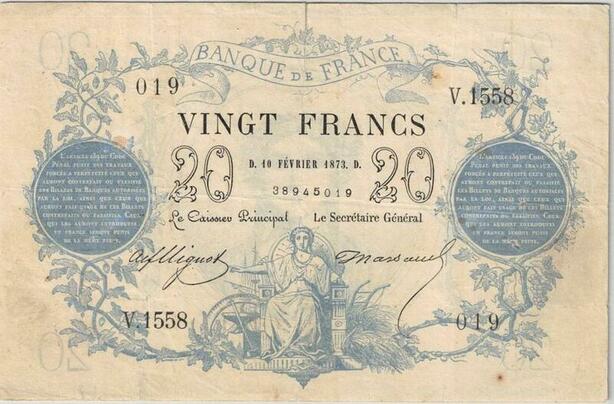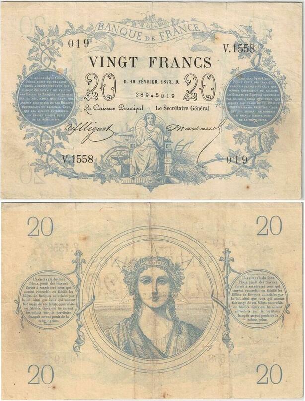 Q5158 Rare Inédit ? France 20 Francs Type 1871 10 Février 1873 PCGS VF25 ->Offer